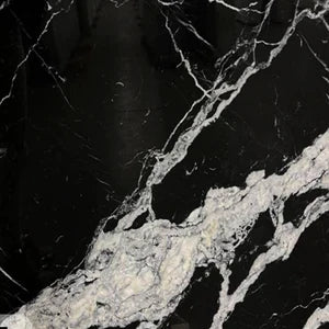 The countertop is available in four variants: black Nero Marquina marble or white Carrara marble. It is available in a brushed or grooved finish.